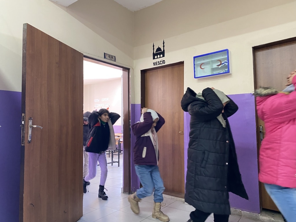 Olası deprem/yangın anında personel ve öğrencilere kurum ve okullarda can ve mal kaybının en aza indirilmesi için eğitim verilerek dersliklerin ve binanın planlı bir şekilde boşaltılması ve önceden belirlenen açık alanlarda hiçbir izdihama yol açmadan toplanmalarını sağlamak amacıyla acil durum durum tatbikatı yapıldı.