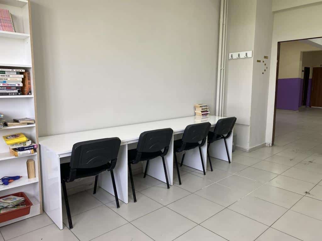 Zorluklara rağmen yazmaya, çizmeye ve öğrenmeye gayret gösteren öğrencilerin kütüphanesi.